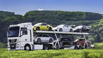 Sei Porsche 911 GT da collezione vanno all'asta, compresa la bisarca che le trasporta