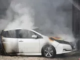 Auto elettrica in fiamme dopo essere finita sott'acqua