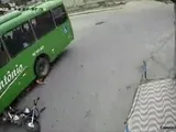 Motociclista finisce sotto l'autobus: il casco gli salva la vita