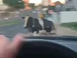 Pericoloso incidente con una mucca che attraversa la strada [Video]