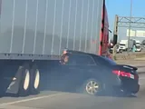 Incidente shock: l'auto è incastrata sotto un TIR, che non si ferma [Video]