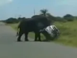 Elefante attacca un SUV nel parco e lo ribalta [Video]