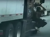 Cosa ci fa un uomo appeso al TIR in autostrada? [Video]
