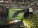 Maserati GranTurismo si ribalta e rimane senza ruote [Video]