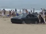 In spiaggia con la Porsche Cayenne: si insabbia e viene spinto [Video]
