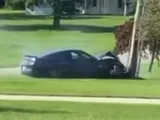 Ford Mustang fa un burnout ma prende il palo [Video]