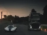 Un camion Volvo sfida in pista una Koenigsegg One:1