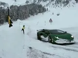 Lamborghini Aventador SVJ sulla neve con sciatore al traino [Video]