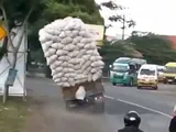 Indonesia: stracarico di sacchi, curva e patatrac!