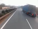 La Porsche Cayenne sbatte contro il TIR e resta incastrata sotto