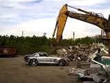 Lo sfasciacarrozze distrugge una Mercedes SLS AMG