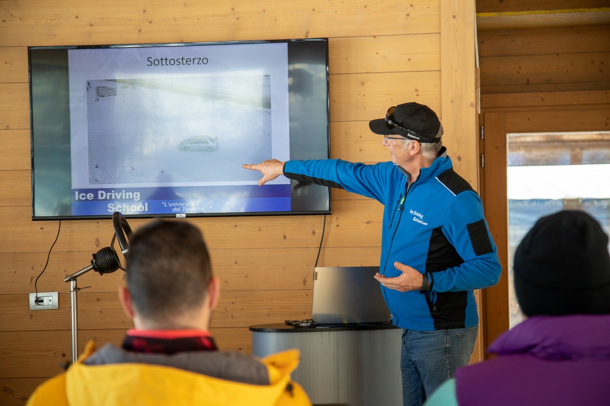 Gli allievi della Ice Driving School sono seguiti da istruttori certificati dalla Scuola Federale ACI Sport e con esperienze nei rally o nelle gare in pista di livello nazionale o internazionale. Si tratta di professionisti con grande esperienza nella guida su fondi innevati e ghiacciati, capaci di trasferire competenze tecniche, controllo del mezzo e consapevolezza.