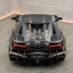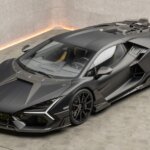 Nel frontale cambia il cofano della Lamborghini Revuelto, con specifiche aperture. L’esecuzione è in fibra di carbonio, stesso materiale usato per le altre aggiunte, come le estensioni del paraurti e lo splitter frontale. Le minigonne laterali sono state riprogettate, guadagnando un look diverso. Anche qui ci sono prese d’aria e alette integrate.