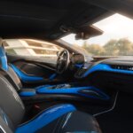 La carrozzeria della Lamborghini Revuelto Opera Unica è stata trattata come una tela. Qui hanno preso forma delle dissolvenze localizzate a due e tre toni, esaltate dalla pittura a pennello che ricorda le onde quando colpiscono la scogliera. Il lavoro degli specialisti non si è fermato all’esterno, ma ha riguardato anche l’abitacolo, con finiture e ricami specifici, in pendant col resto.