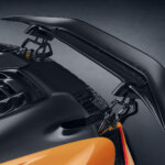 L’aerodinamica attiva è particolarmente evoluta e può cambiare il carattere del mezzo, trasformandolo da missile stradale a bolide da pista, quando serve. Il tutto, riducendo l’altezza da terra di 37 mm nella parte anteriore e di 17 mm in quella posteriore. La deportanza si spinge fino a 1.000 kg, a conferma di uno studio dei flussi particolarmente accurato, al top di sempre per un’auto del marchio omologata per il listino commerciale. Il rivoluzionario alettone posteriore McLaren Active Long Tail, che si estende all’indietro di 300 mm, è solo uno dei numerosi brevetti che accompagnano il modello.