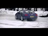 Subaru Impreza tenta il sorpasso, sbanda sul ghiaccio e va in testacoda